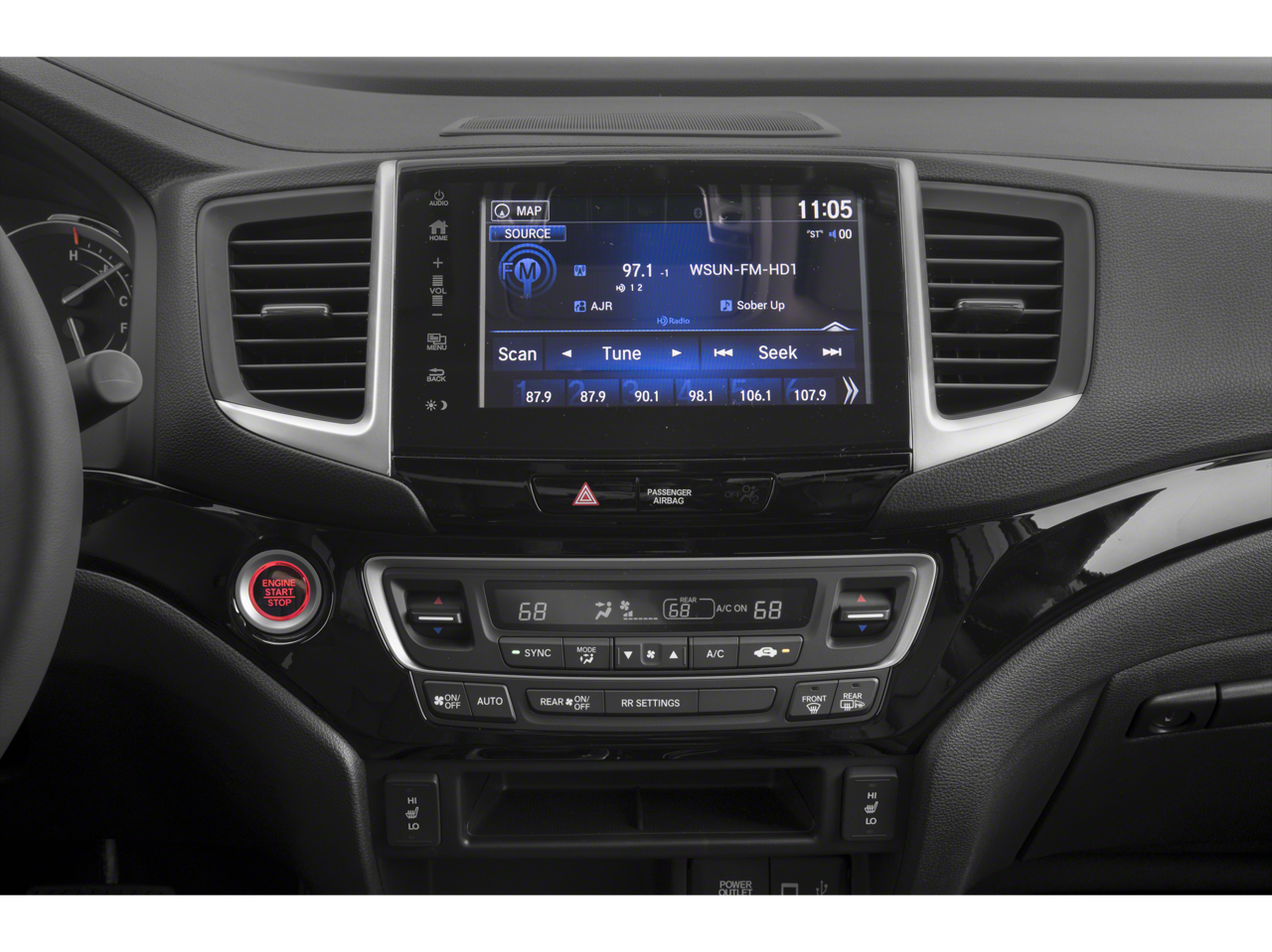 - Radio: AM/FM/MP3 w/Nav System & Truck-Bed Audio -inc: 540-watt premium audio system, 8" display audio w/high-resolution WVGA (800x480) electrostatic touch-screen and customizable feature settings, 8 speakers including subwoofer, Bluetooth® streaming audio, auxiliary input jack, Radio Data System (RDS), speed-sensitive volume control (SVC), 1.5-amp port in front/1.0-amp port in center console, Apple CarPlay, Android Auto, HondaLink, SMS text message function, HD radio, Pandora compatibility and 2.5-amp charging port