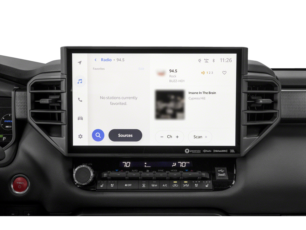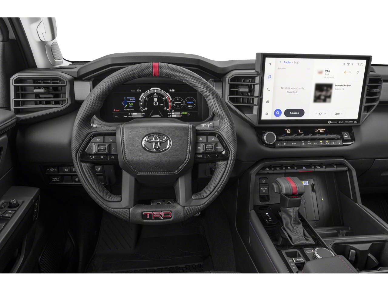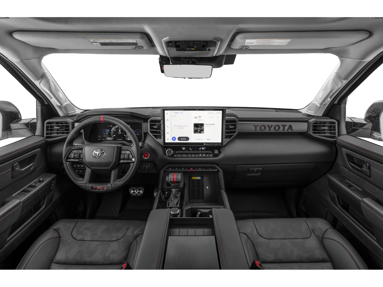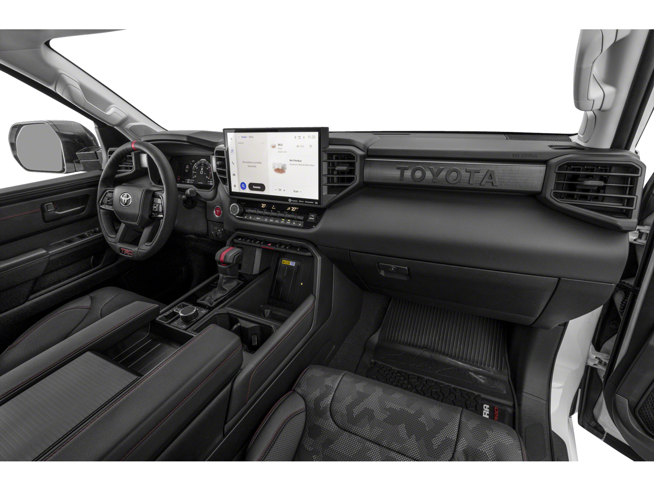 Stepping inside, you'll be greeted by a cabin that seamlessly blends premium comfort and advanced technology. Heated and ventilated front bucket seats, a TRD Pro-branded leather-wrapped steering wheel, and a 12-speaker JBL premium audio system create an unparalleled driving environment.